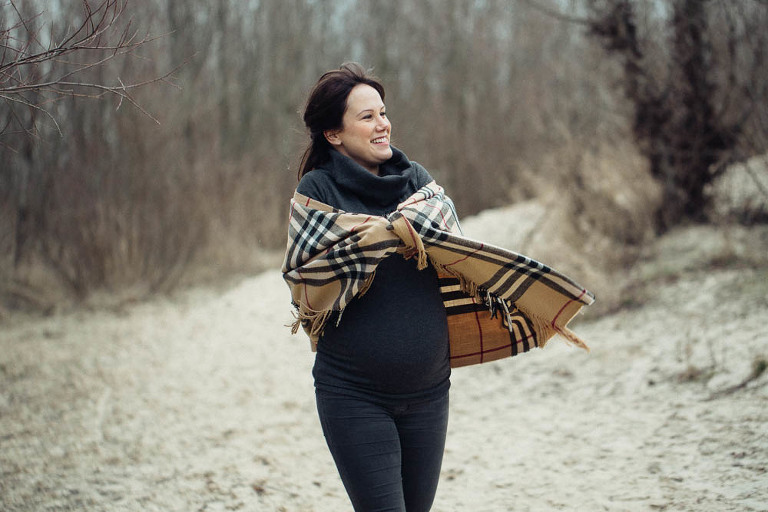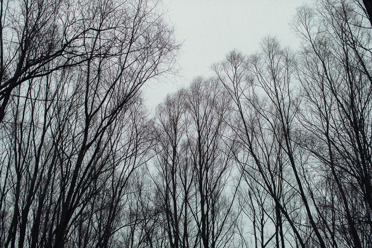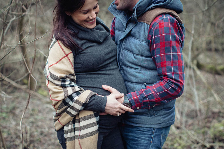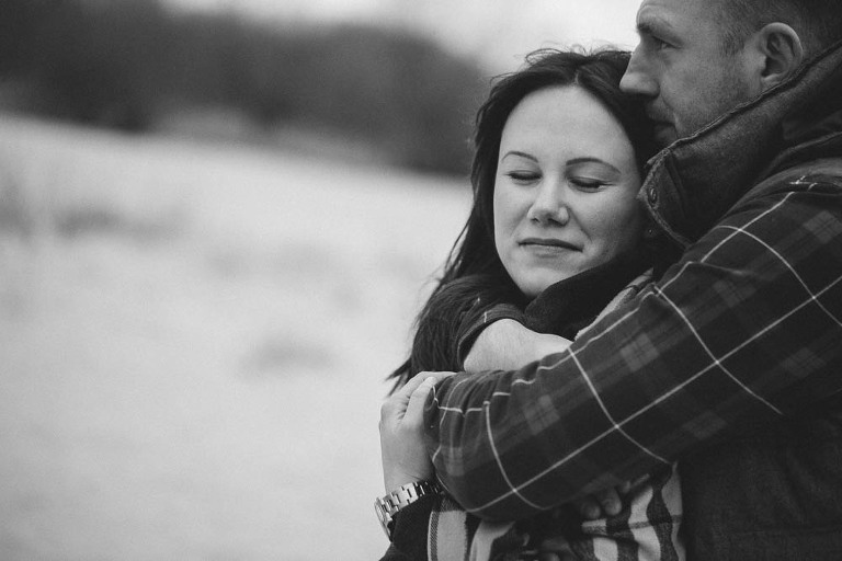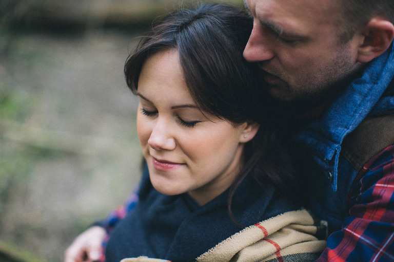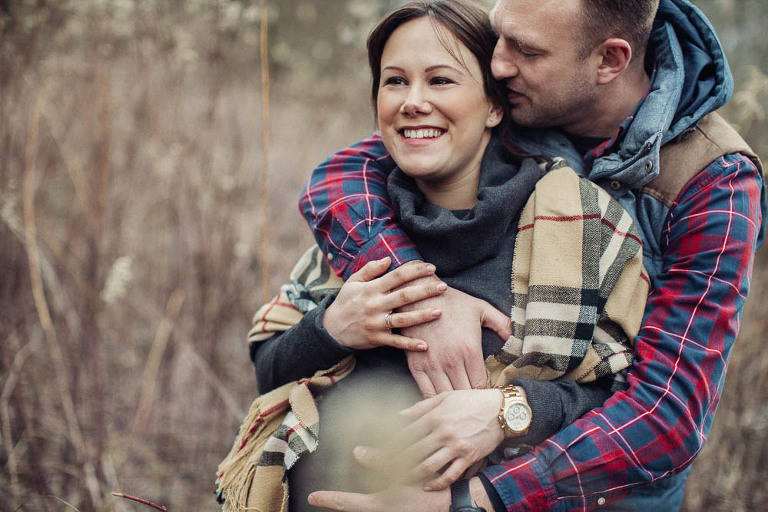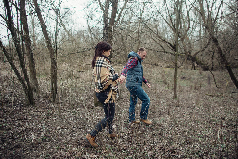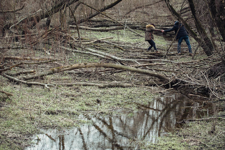 Miało być niestandardowo dla tego typu zdjęć. Ada z Marcinem nie chcieli kolejnej przytulonej, słodkiej sesji ciążowej z małymi bucikami stąpającymi po brzuszku, jakie mogli zaobserwować w Internecie. Mimo iż tego typu fotografię też mają jakiś swój urok, to padł jednak pomysł aby zrobić zdjęcia w plenerze, ale w nieoczywistej scenerii a wręcz przeciwnie, w bardziej mrocznym otoczeniu. Okres końcówki zimy idealnie do tego się nadawał, z resztą nie było innej możliwości gdyż termin porodu się zbliżał. Tak więc udaliśmy się do lasu gdzie rozpuszczony śnieg tworzył dość grząski teren, a w niektórych miejscach mieliśmy wrażenie, że znajdujemy się na jakiś mokradłach. Nie było lekko, i mimo że teren był dość ciężki oraz momentami wiał dość silny chłodny wiatr, to dzielnie znosili oni moje propozycję. I tak oto powstała ta krótka nietypowa sesja ciążowa w plenerze.
