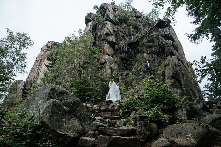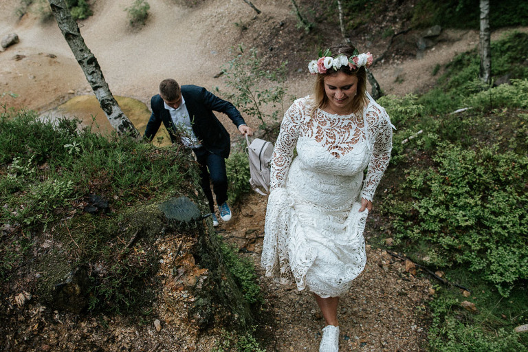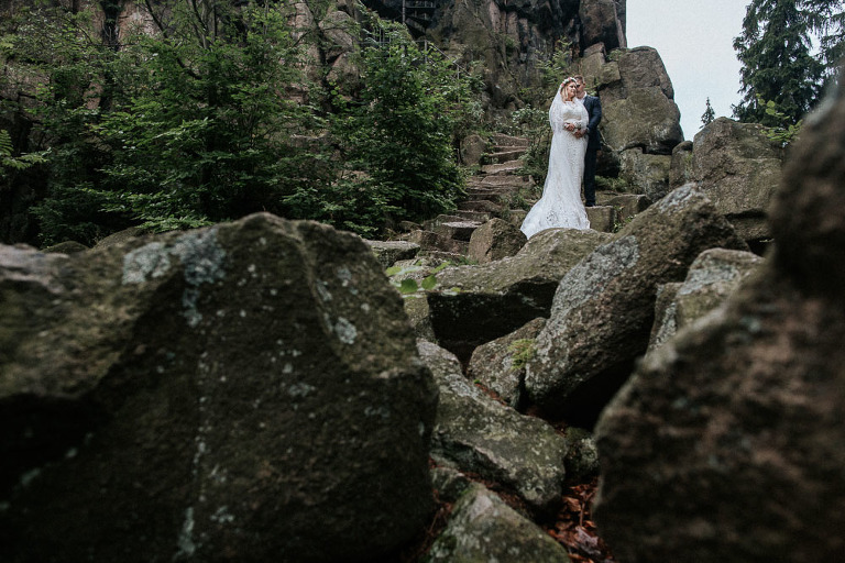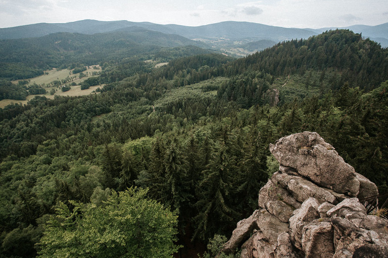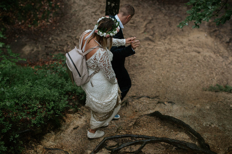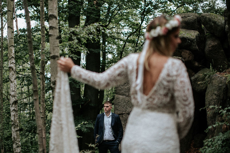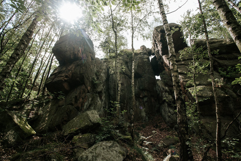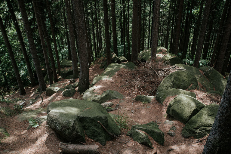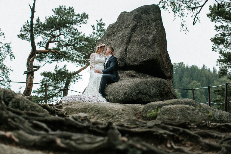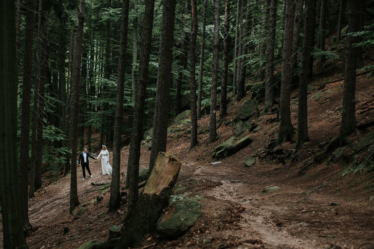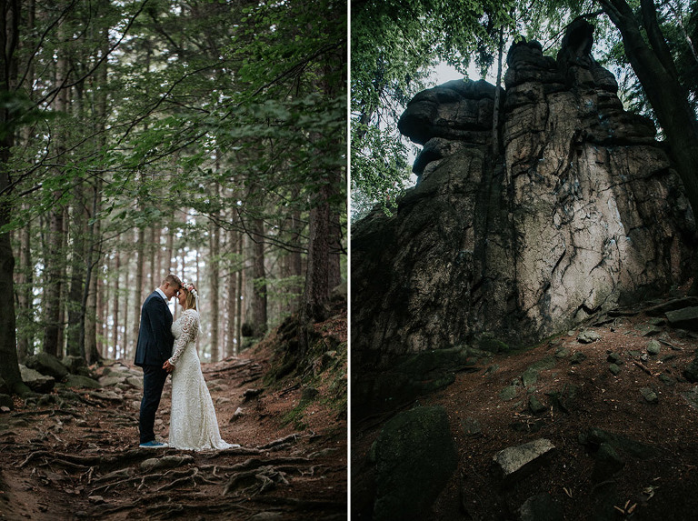 Sesja ślubna w Sudetach to pomysł który pojawił się nam bardzo spontanicznie. Od dawna szukałem pary, która była by chętna wyjechać ze mną na jakiś górski plener. Na szczęście Oli i Karola nie musiałem długo namawiać. Ponieważ był środek sezonu turystycznego (lipiec), to zdecydowaliśmy się wybrać mniej popularne oraz uczęszczane miejsca. W pierwszej cześć sesji ślubnej w Sudetach, postanowiliśmy udać się w góry Sokole, które znajdują się w Sudetach Zachodnich. Całość należy również do terenu Rudawskiego Parku Krajobrazowego, gdzie odbyła się z resztą nasza druga cześć sesji.