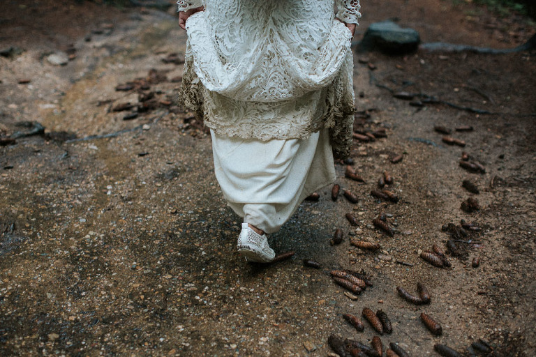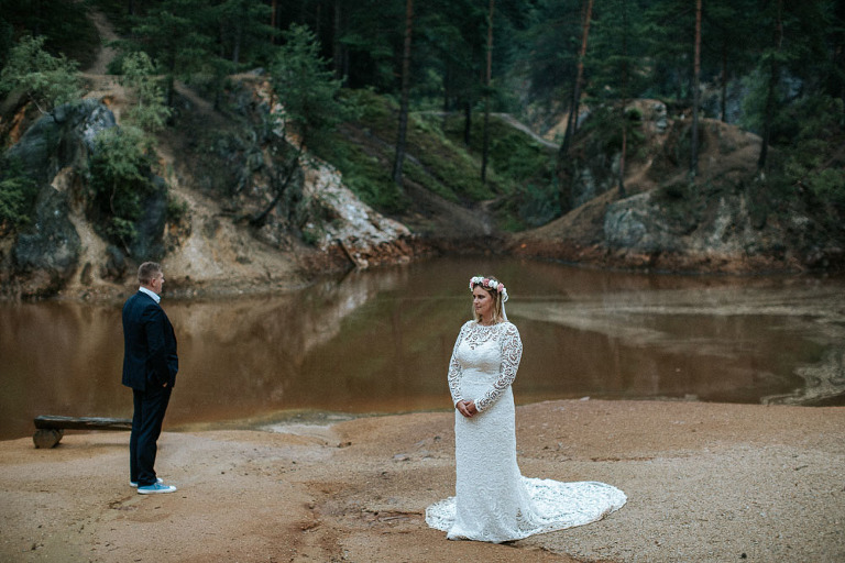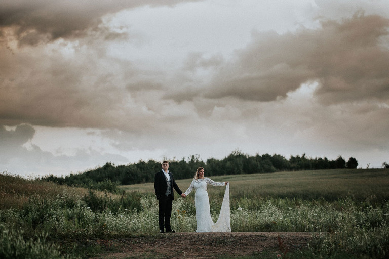 Tak jak wspomniałem na początku wpisu, pomysł pleneru ślubnego w górach był spontaniczny. Bo jak na środek wakacji, lipiec był dość chłodny, wietrzny oraz deszczowy. Postanowiliśmy jednak zaryzykować i wstrzelić się w tak zwane okno pogodowe, kiedy akurat wybranego dnia miało być ładnie. Całość zaczęliśmy o świcie, gdzie chcieliśmy przed właściwym plenerem zaliczyć wschód słońca. Niestety pogoda w górach zmienną jest, i w tym przypadku również tak było. Od rana przywitał nas deszcz. Towarzyszył on nam przez cały dzień, ale wbrew pozorom, ja akurat lubię takie warunki, zwłaszcza w takiej scenerii 🙂 Cieszę się również że trafiłem na takich super ludzi jak Ola i Karol, którzy nie narzekali na warunki nawet przez chwilę. A przecież nie jest tak łatwo przemieszczać się w sukni ślubnej oraz garniturze po mokrych szlakach 😉 Ma to też swoje plusy, gdzie podczas takiej pogody trasy jakie przemierzaliśmy są mniej obłożone przez turystów. My w zasadzie nikogo nie spotkaliśmy w miejscach, w które się udawaliśmy. Na szczęście trud naszej podroży bardzo szybko zrekompensowały nam widoki oraz przestrzeń jaką napotkaliśmy. Mam również nadzieję, że i zdjęcia jakie powstały, które z pewnością są nietypową sesją ślubną dla pary. Ja jestem bardzo zadowolony, a Wy oceńcie sami…