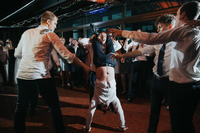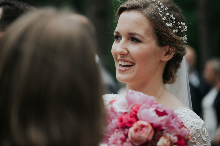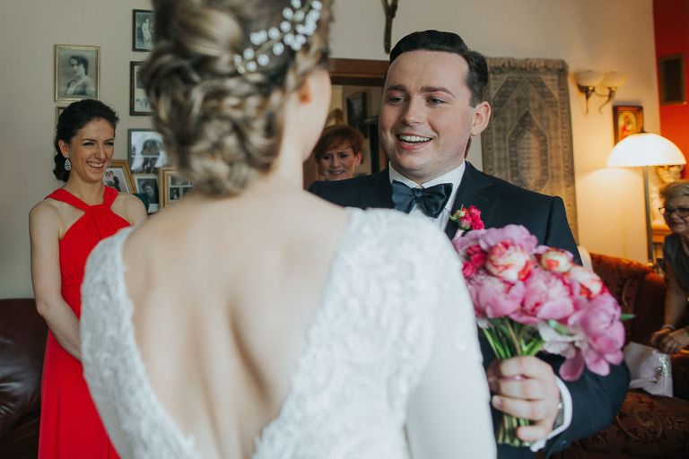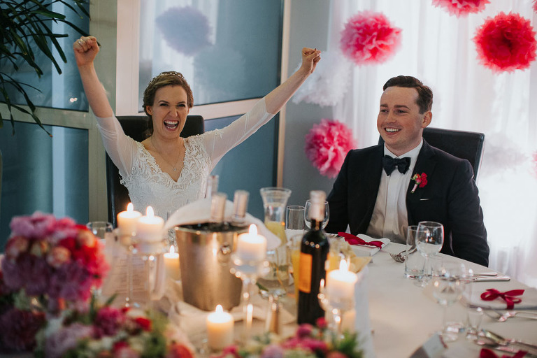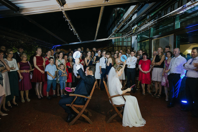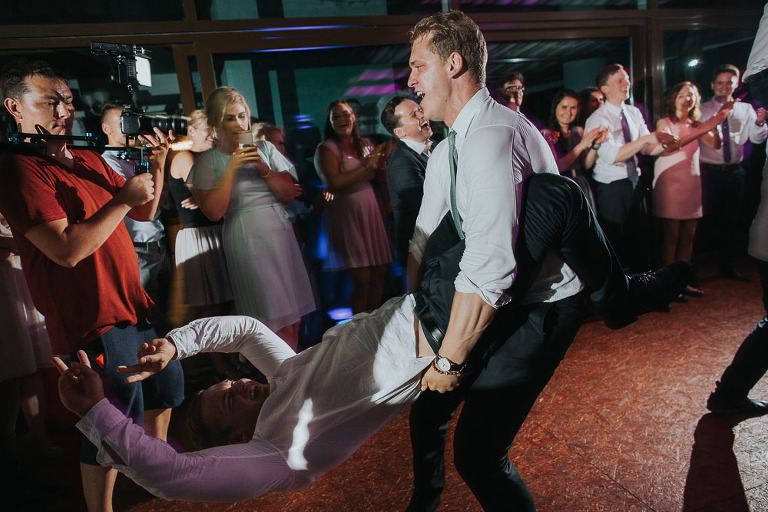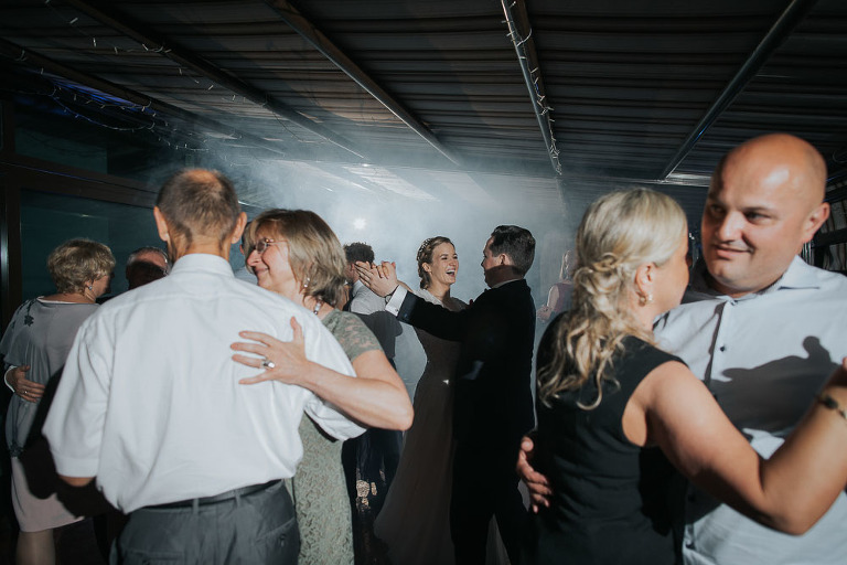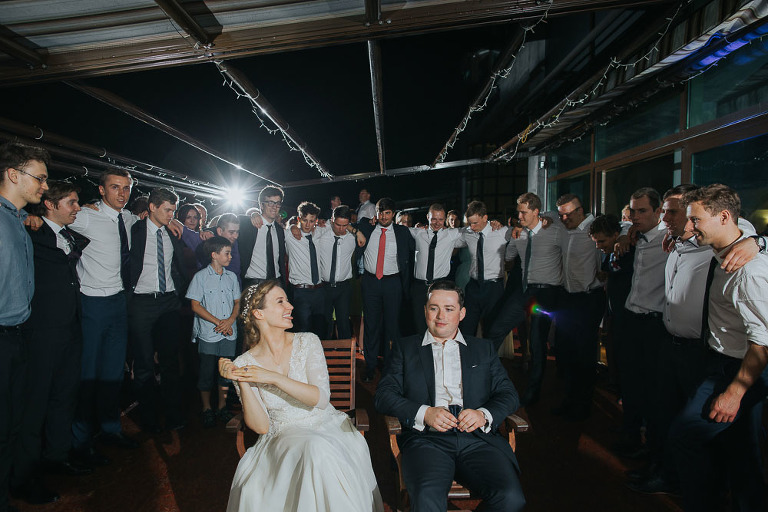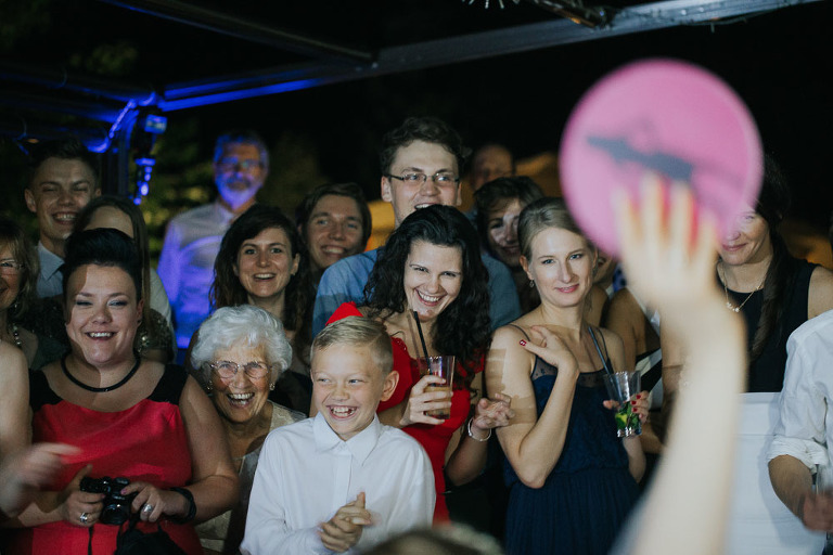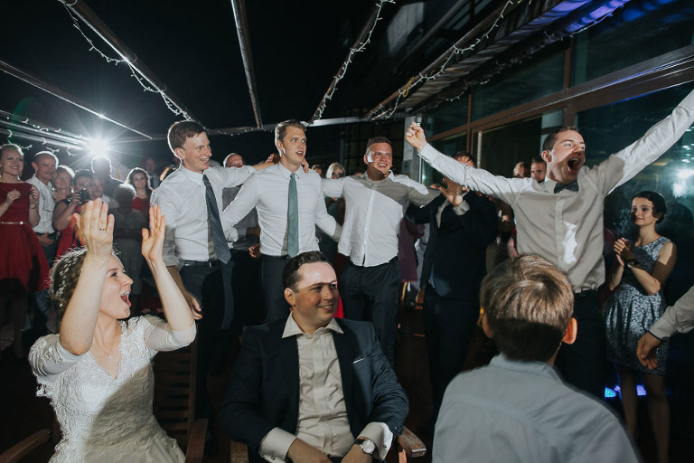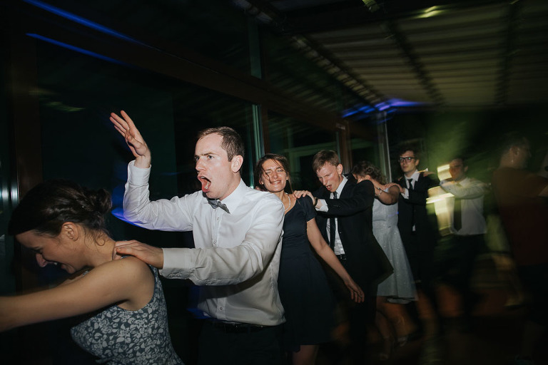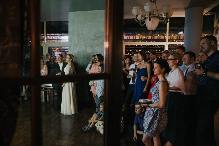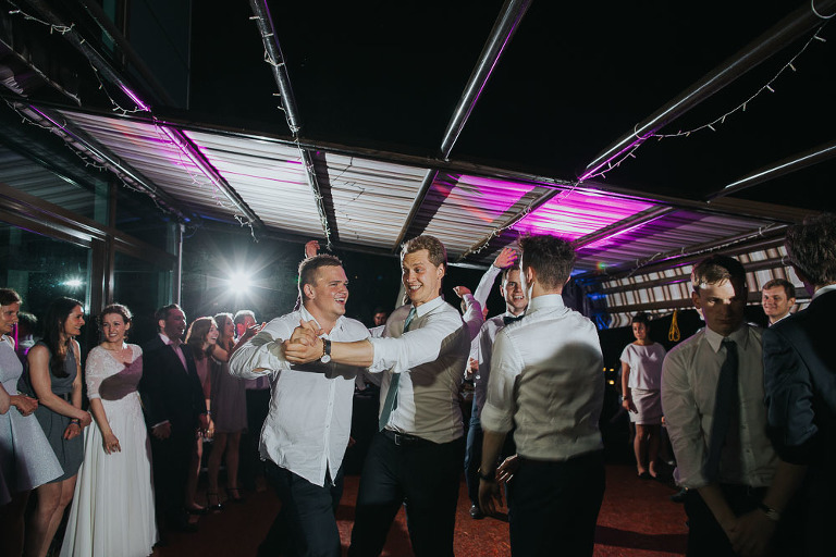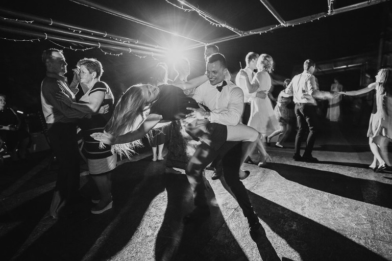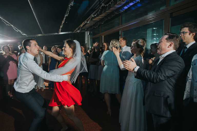 Pod wieczór deszcz ustał. Całe szczęście, bo zabawa weselna w Villi Maranello planowana było częściowo w plenerze. Oprócz stref relaksu znajdował się tam między innymi parkiet. To na nim właśnie Agata z Bartkiem zatańczyli swój wyjątkowy pierwszy taniec, rozpoczynając tym samym energiczną zabawę weselną do samego rana. Jak widać nikt się nie oszczędzał 😉