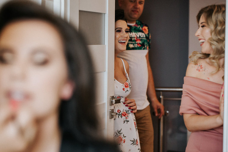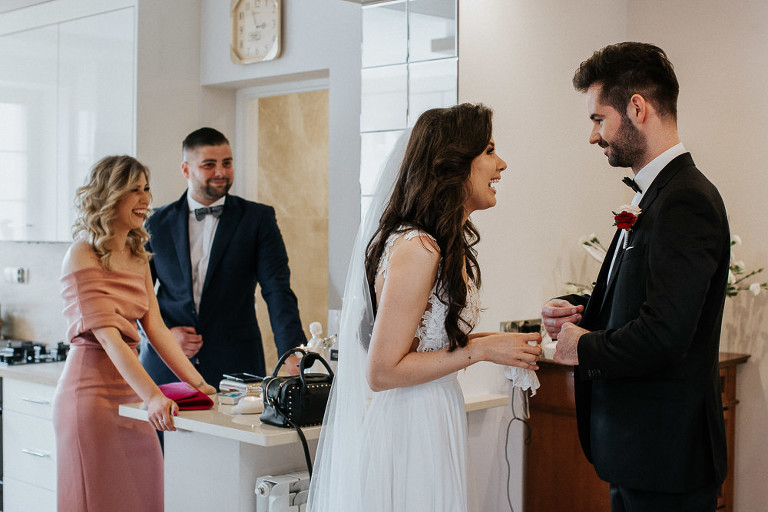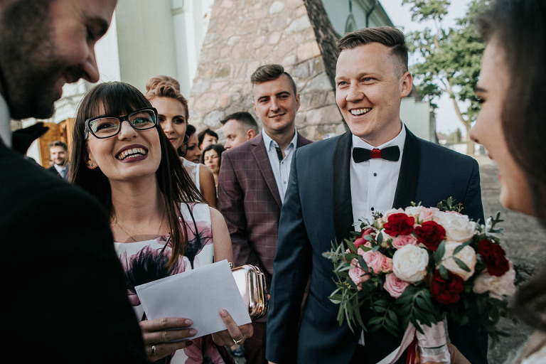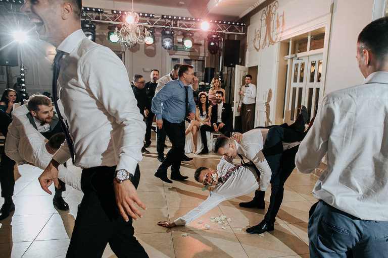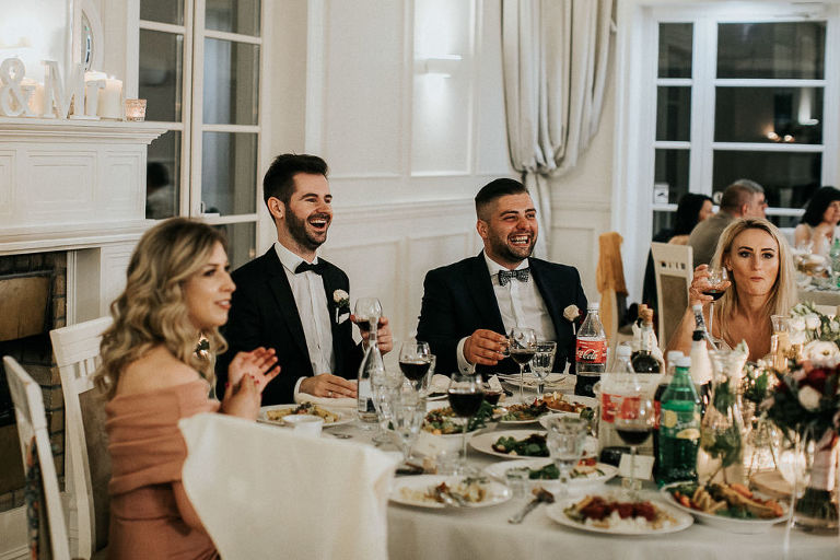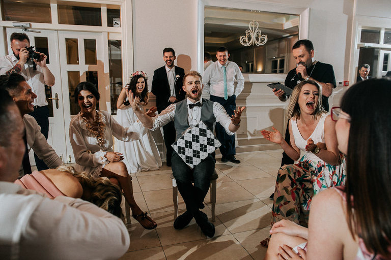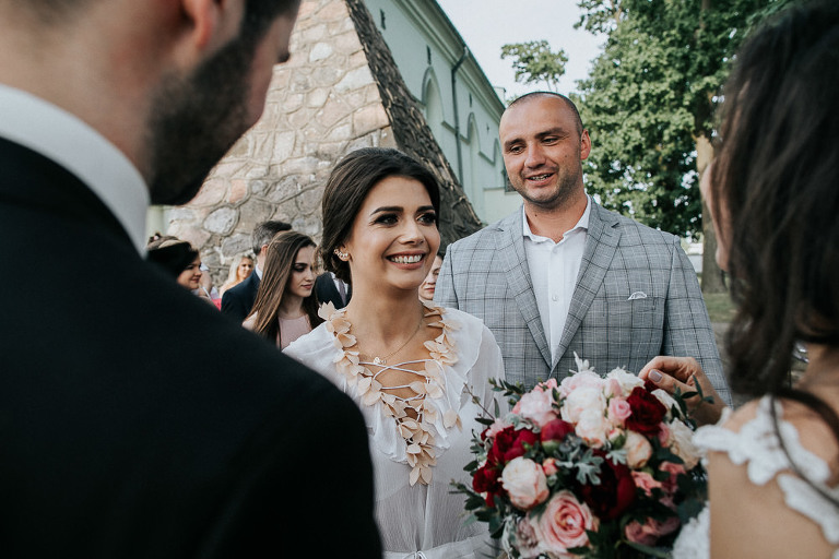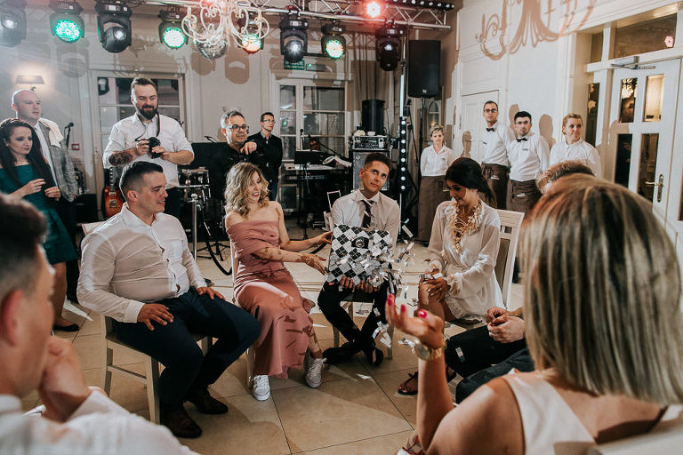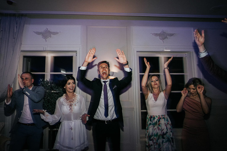 Poza płonącym na parkiecie ogniem, który młodzi własnoręcznie rozniecili, nie zabrakło pamiątkowych grupowych zdjęć! Zazwyczaj parom młodym zależy na uwiecznieniu ich przyjaciół, a piękna okolica Dworu Złotopolska Dolina umożliwiła wykonanie właśnie takiej pamiątki w nowoczesnej, oryginalnej interpretacji 🙂 Podoba Wam się?