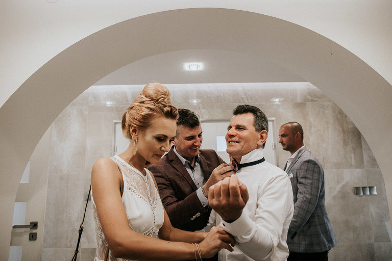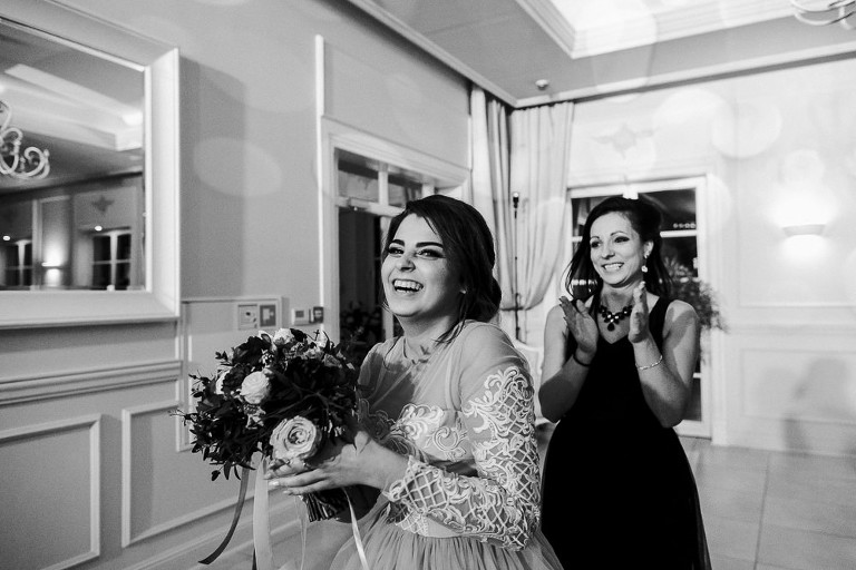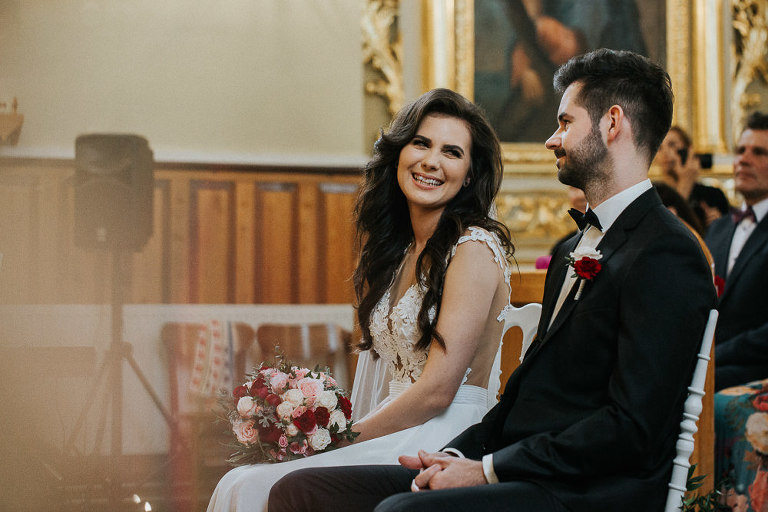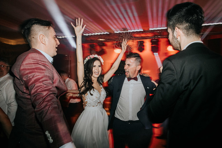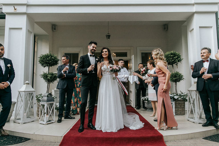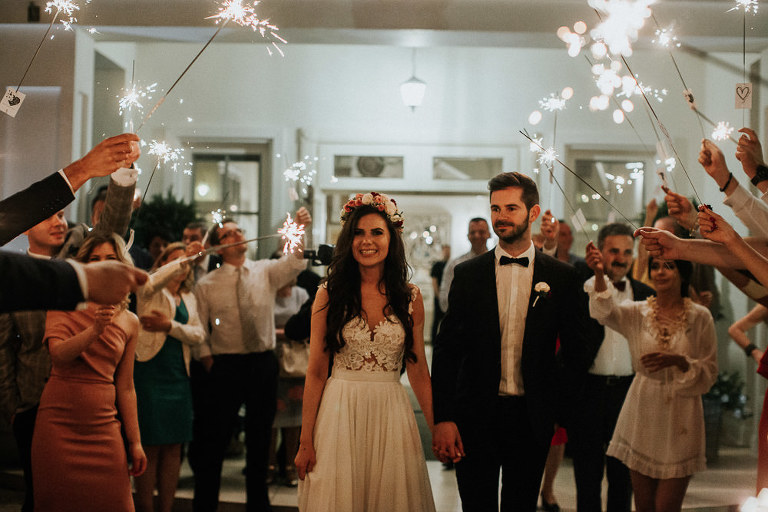 Diana i Marcin doskonale wiedzą, czego chcą od życia. Zeszłego lata wiedzieli, że pragną, aby ich wesele w Dworze Złotopolska Dolina było tym wymarzonym. I było! Pełne serdecznych przyjaciół i rodziny, muzyki towarzyszącej na każdym kroku oraz… ognia na parkiecie! Parkiet płonął między innymi dlatego, że większość gości była i jest zawodowo związana z muzyką – co chwilę ktoś wchodził na scenę, aby dać popis swoich możliwości. A że Diana z Marcinem od wielu lat grają w zespole – ona na skrzypcach, on na basie – również zawładnęli sceną!